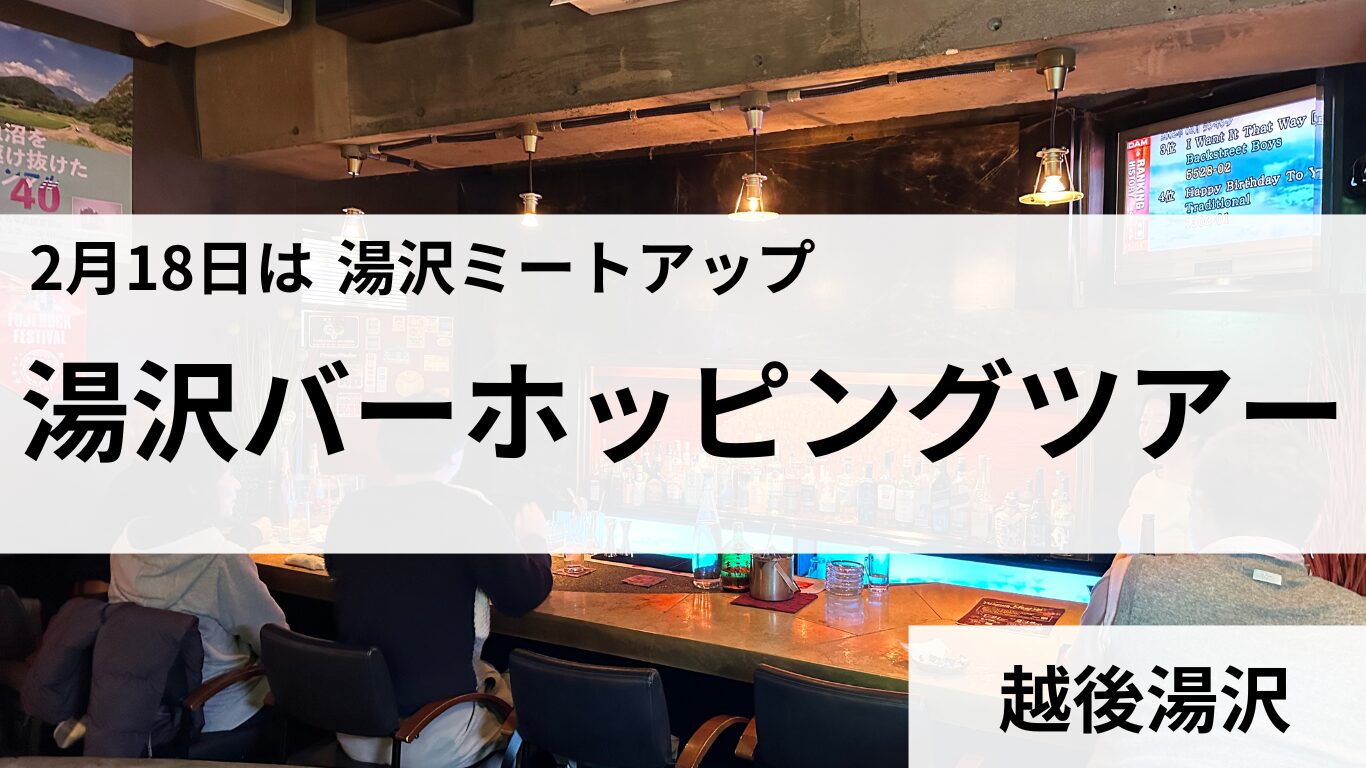 今回は2月18日(火)の18:00〜21:00まで“湯沢ミートアップ〜湯沢バーホッピングツアー〜が開催されます。(※直前まで受付可)