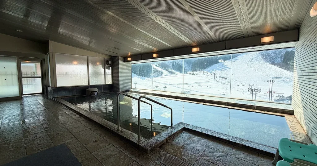 7階にある大浴場は広々としていて、スキー場を一望できる露天風呂もあります。
